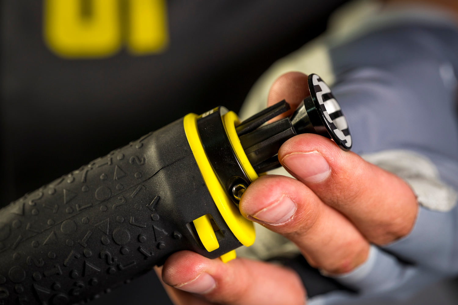 The angle at which the grips are installed is crucial to ensure optimal functioning of the elastomer Air Plenum, so do this while seated in a comfortable riding position to ensure maximum shock dampening.
